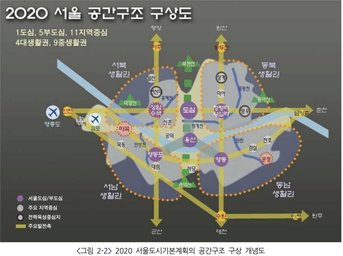 먼저 2020 기존 구상안 (2020 서울 도시계획 - 2006년도 발행) 입니다. 그리고 2030 개편안 (2030 서울도시계획 - 2016년도 발행)을 비교하여 한번 보시죠.