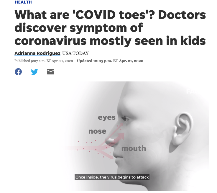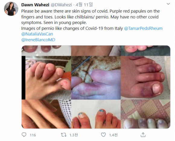 COVID toes 라는 용어가 새롭게 유행하고 있습니다.